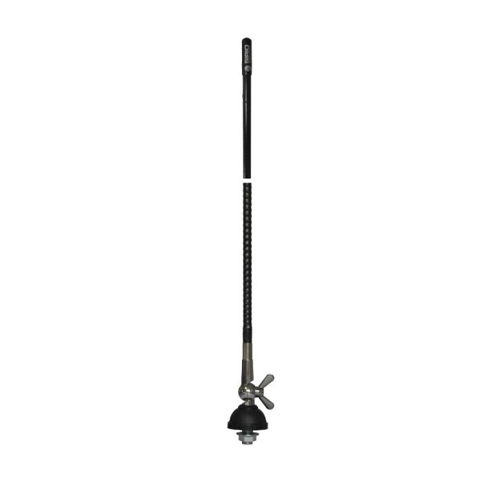 CB Mobile Sirio T3-27N antenna, DV27 base plate support with drilling, with Black Whip, height of 62cm and power of 20W continuously and 100W in short period. Tunable according to the length of the