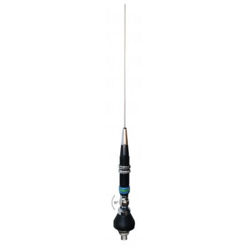 Sirio Super Carbonium 27 Mobile CB / 10m antenna, N-mount mounting, stainless steel whip, 140 cm, 250 Watts, 1850 KHz. Antenna tunable from 27 to 28.5 MHz with conical stainless steel whip. 180 ° tilt