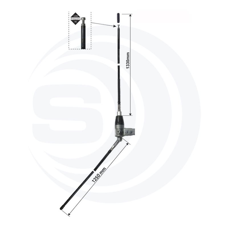 Total antenna length: approx. 2.47m. Maximum power 300W continuous / 900W SSB.
