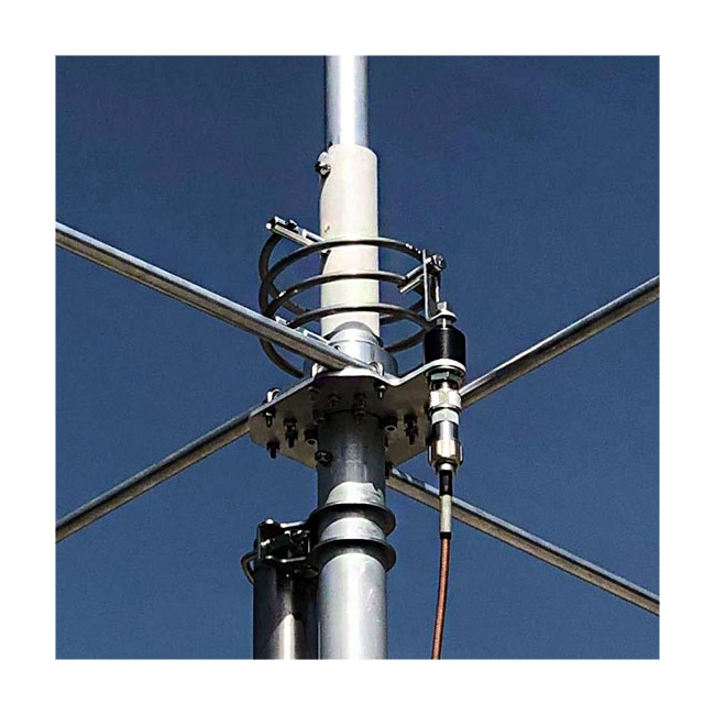 The ground plane is made up of 4 robust quarter-wave radials 1.4m long.
