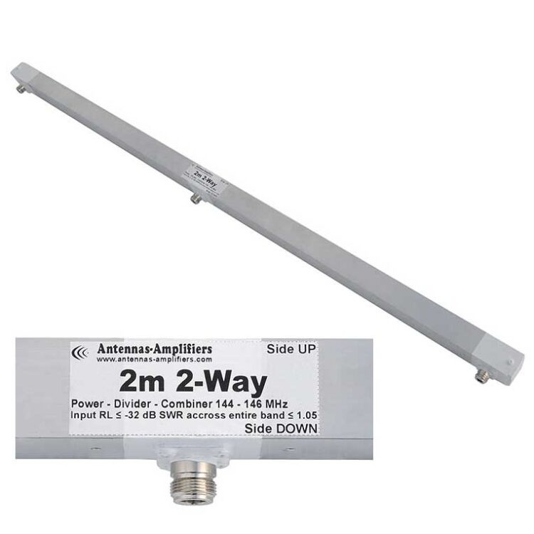 2 meter 144 MHz Coaxial Power Splitter Divider 2 Port “N” Connectors 1/4 wave. This divider has been tested and improved over the years. With it, we came up with a perfect adjustment to 50 ohms.
