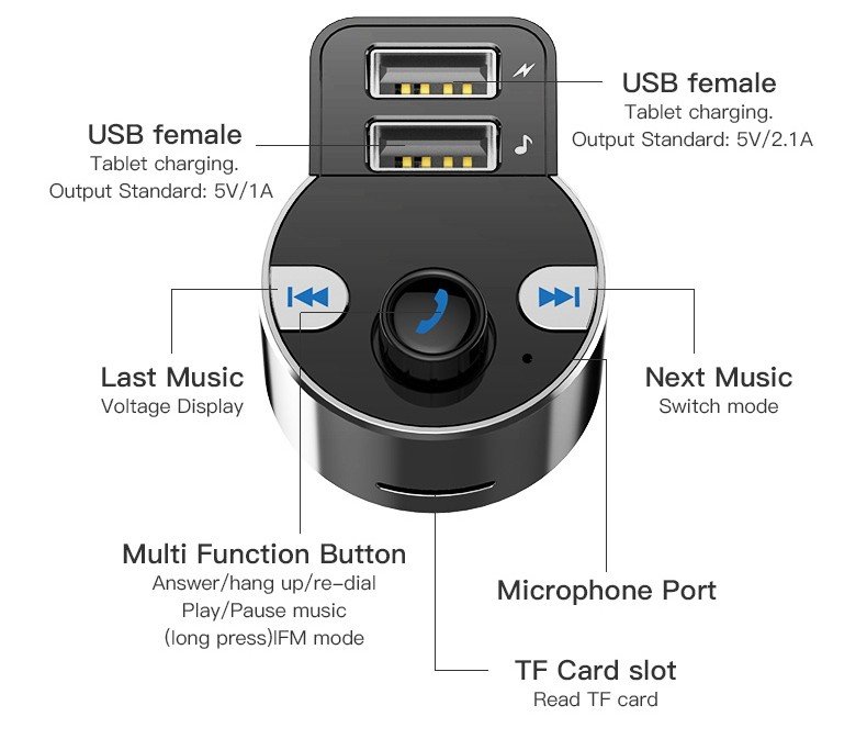 Comes with: 1 Bluetooth 4.2 car transmitter, 1 manual (in English).
