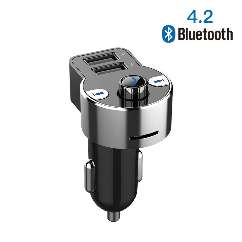 This Bluetooth FM transmitter has 2 USB ports, for listening to music from a USB key and an SD card reader.