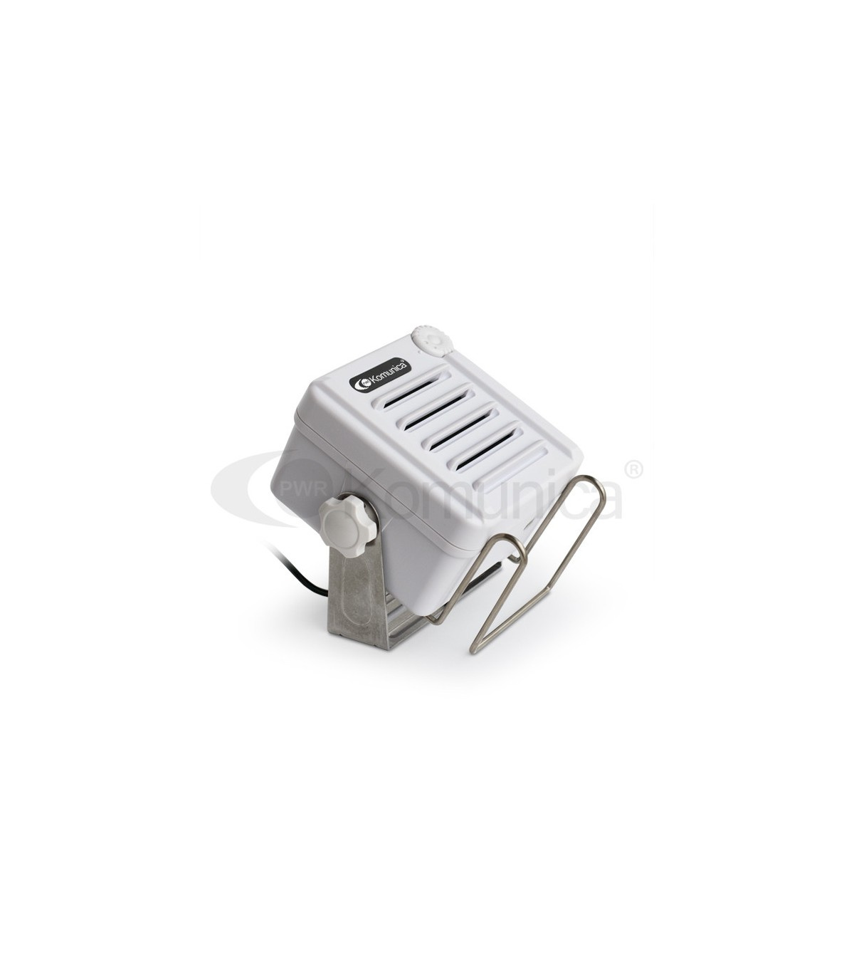 Comes with: 1 Komunica PWR-SB1-M speaker with 4m cable and 3.5 mm plug, adjustable mounting bracket, mounting screws.