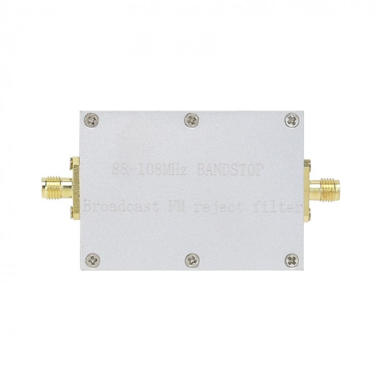 - Blocks the broadcast FM band between 88 - 108 MHz with over 50dB of attenuation. It is designed for maximum attenuation between 88 and 108 MHz and 3dB roll-off points are at 76 MHz and 122 MHz.