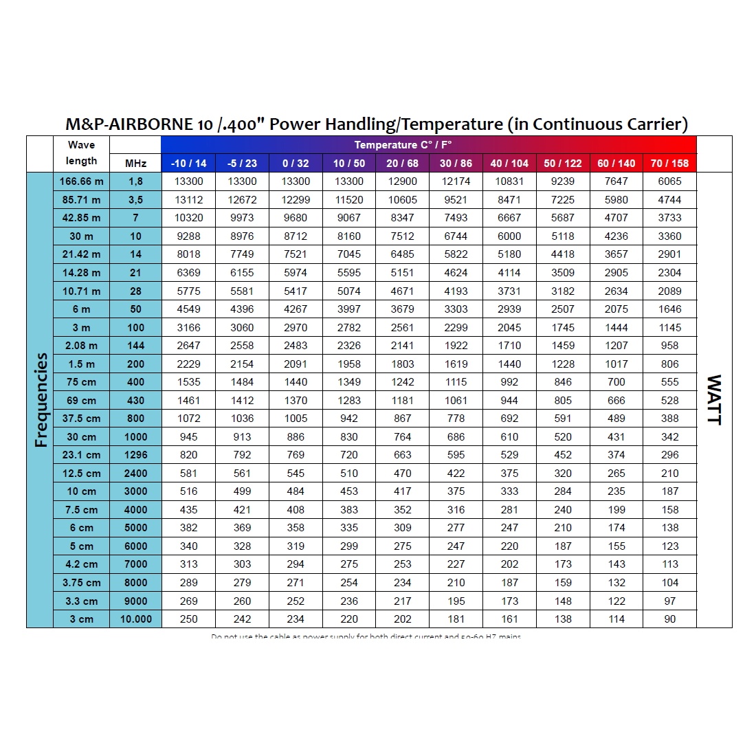 Read the 3 reviewsAIRBORNE 10 coaxial cable (Messi & Paoloni), high performance, very low loss, light, for use in frequencies from 0 to 12 000 Mhz (12 Ghz) and high powers.