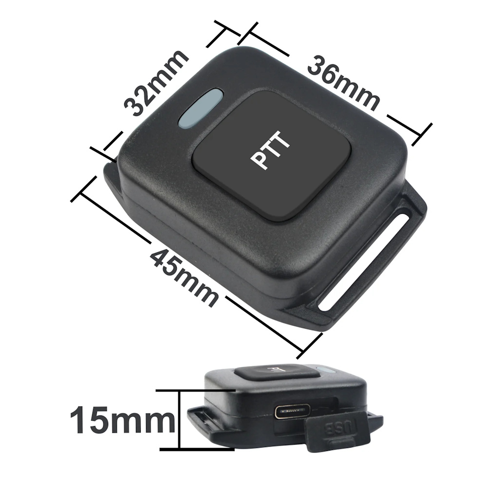 Delivered with: 1 PTT button, 1 velcro strap and 1 USB-C cable.