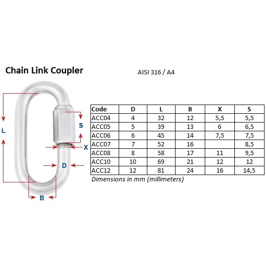 Single stainless steel carabiner for attaching a steel guy rope or a guy rope.Strength: 400 daN, ~kg Working load 120 daN, ~kg From 5mm to 8mm