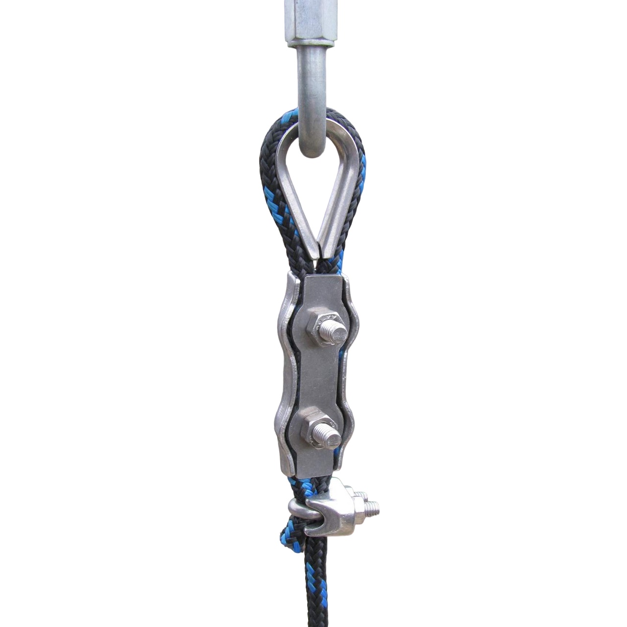 Stainless steel cable clamp for guy wires, easy to install thanks to the long threaded section. For optimal hold, we recommend using 3 cable ties and a heart-shaped lug per fixing point.