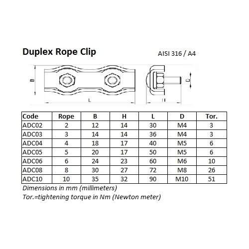 Tensioner for guy ropes with double eyelet (diameter 10 to 16 mm) in stainless steel for easy installation. For the calculation of the maximum static load, we recommend 30% of the breaking load (BS).