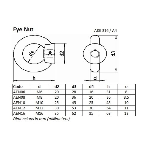 28,09 € -20%Stainless steel threaded rod ring 6 to 10 mm in diameter (to be selected below)Strength: 1420 daN, ~kg Working load 240 daN, ~kg