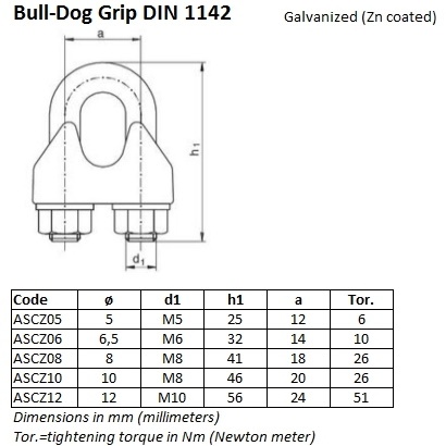 Cable clamp (duplex clip) prevents spontaneous loosening, strong counter-pressure due to the elasticity of the ropes. The 2 nuts allow for easy loosening for adjustments. To be used with a heart lug
