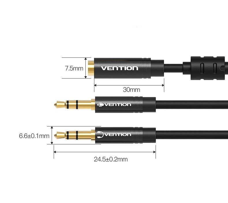 This Vention audio cable can connect any type of audio device with 3.5mm jack.Gold plated connectorLength: From 50cm to 5m (to choose below)Braided cotton cableCE and RoHs standards2 years