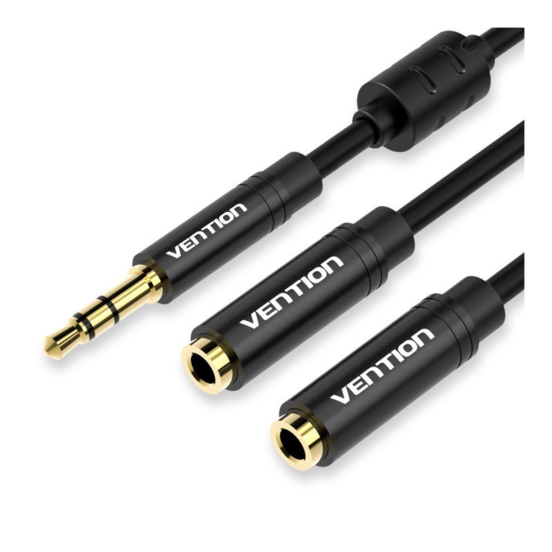 This audio cable with ferrite Vention allows to combine 2 Jack 3.5mm female jacks (microphone and audio) in 1 audio jack SMA male 3.5mm.It allows for example to connect a smartphone headset on the