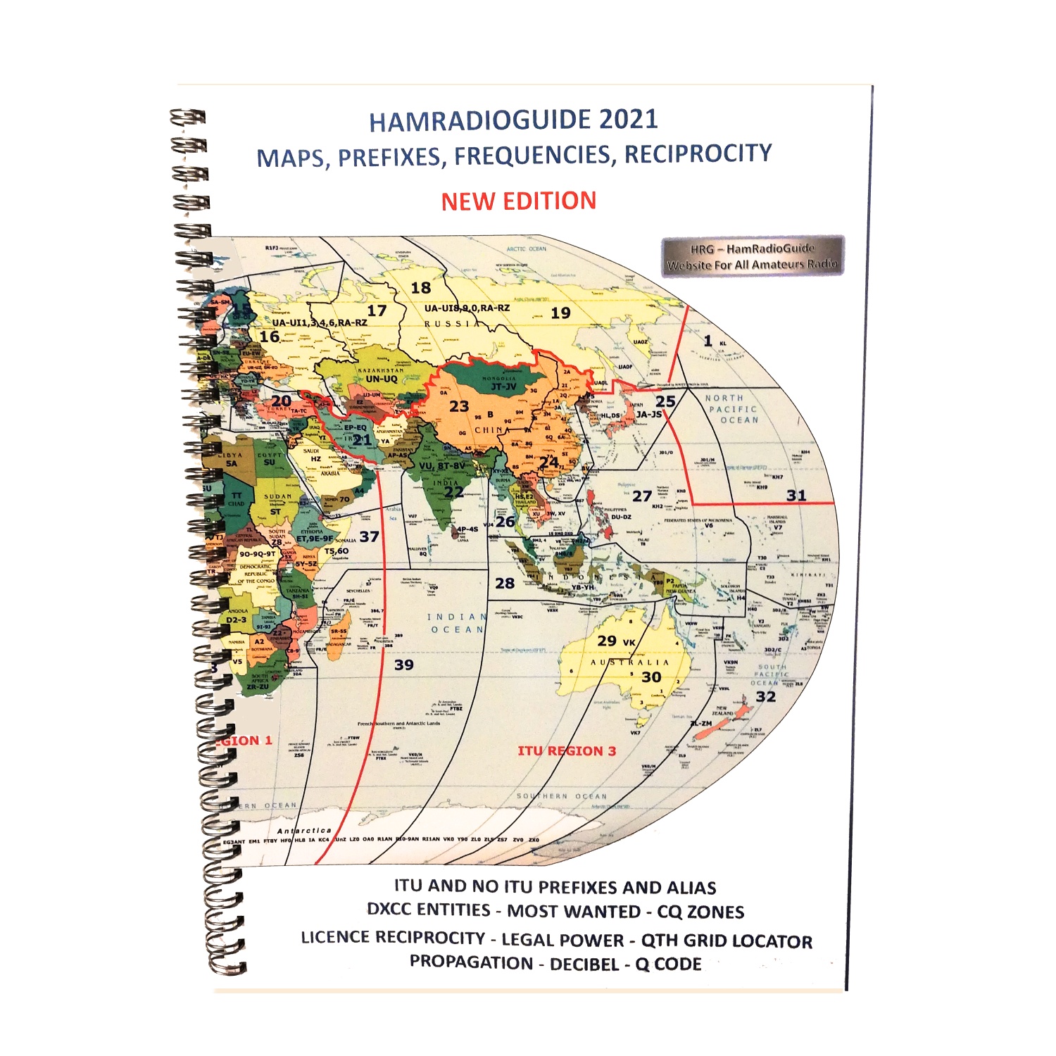 - World map on the outer cover (unfolded in A3 format) with all prefixes, CQ and ITU zones