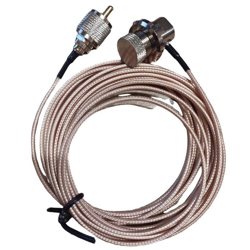 Antenna socket SO-239 (UHF female) with Sirio HI-PERFORMANCE hole with 5 meter RG58 coaxial cable and FME connector, delivered with FME to PL-259 adapter. Delivered with: 1 Sirio Hi-performance