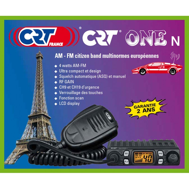 No review at the momentCitizen band CRT ONE V 40 channels AM / FM and 4 watts, ultra-compact, approved European standards. Device usable without license. Range of 5 to 10 km with an antenna on the roof of the vehicle.
