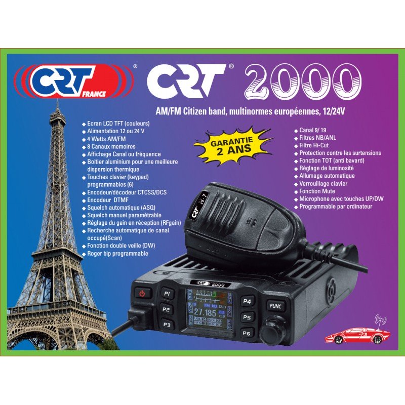 No review at the momentCB CRT 2000 40-channel AM / FM 4-Watt, large LCD display, 12 / 24V power supply, license free in Europe. Range of 5 to 10 km and more in open and unobstructed conditions.