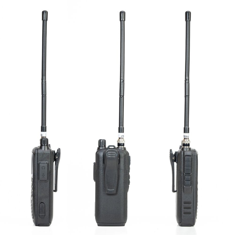The PNI Escort HP 82 can be used both as a mobile station by installing the 12V cigarette lighter adapter and external antenna connector, and as a portable station by connecting the 240mm BNC antenna and 1800mAh Li-Ion battery.