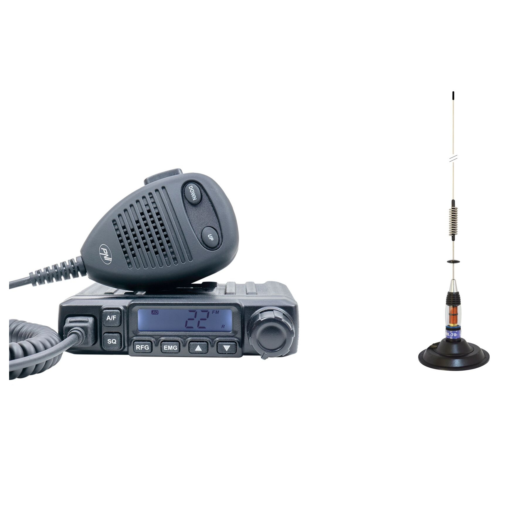 This complete ready-to-use pack includes the PNI Escort HP 6500 CB radio, offering 40 channels of communication with 4 watts of power in AM/FM mode, as well as a antenna with PNI70 magnetic base magnetic base and a 4-metre coaxial cable with PL-259-compatible connector.