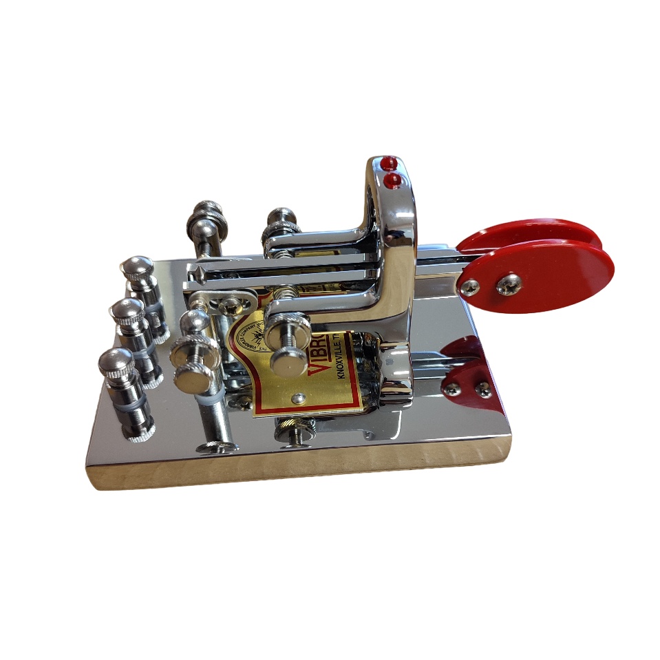 CW Vibroplex Straight Key Deluxe Manipulator, straight morse key with bright decorative chrome tops and base. The heavy 1.4kg solid steel base anchors the morse keyer in the operating position, while
