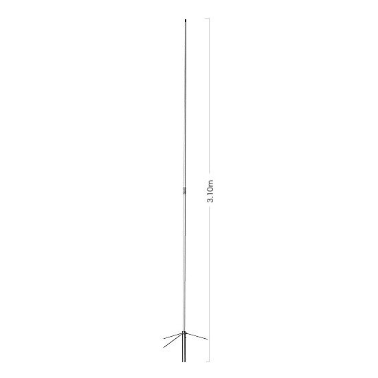 Tri-band antenna 144/430/1200MHz (2m/70cm/23cm) Type:1/2 wave C-Load radialless (144MHz), 2x 5/8 wave C-Load radialless (430MHz),5x 5/8wave C-Load radialless(1200MHz)Length: 1.3mWeight: 0.7kg Gain: