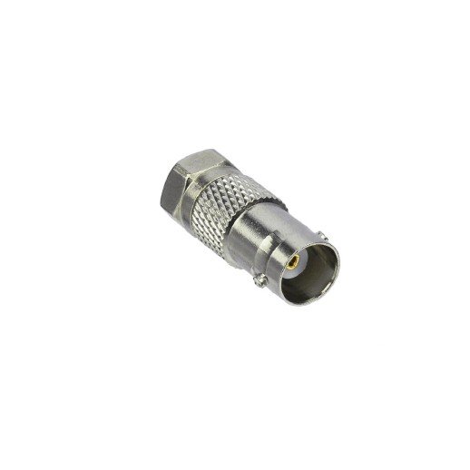 This RF adapter converts an F female connector to an SMA male connector. The F connector is particularly used for satellite equipment.