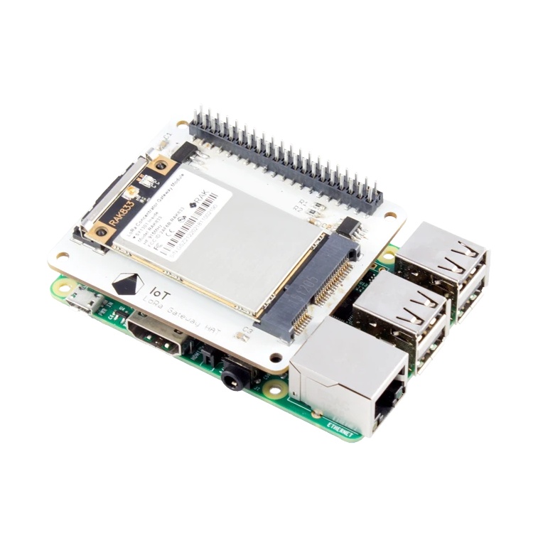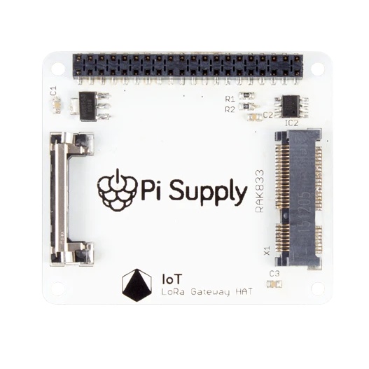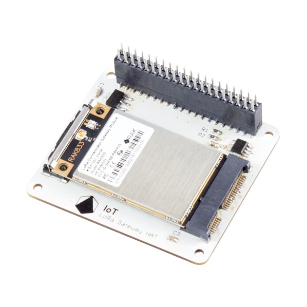 The LoRa HAT IoT Gateway uses the RAKWireless RAK2245 LoRa Gateway Hub Module which provides a fully LoRaWAN compatible gateway listening on 8 channels simultaneously.