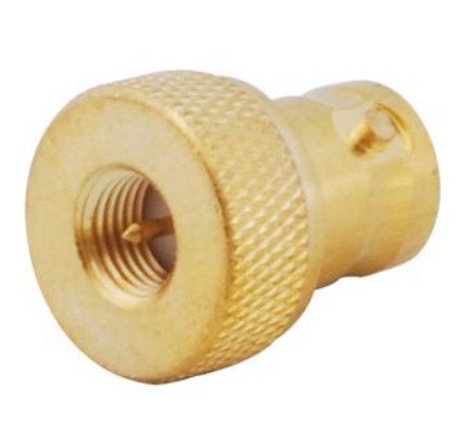 - The adapter has a male SMA connector on one side and a female BNC connector on the other