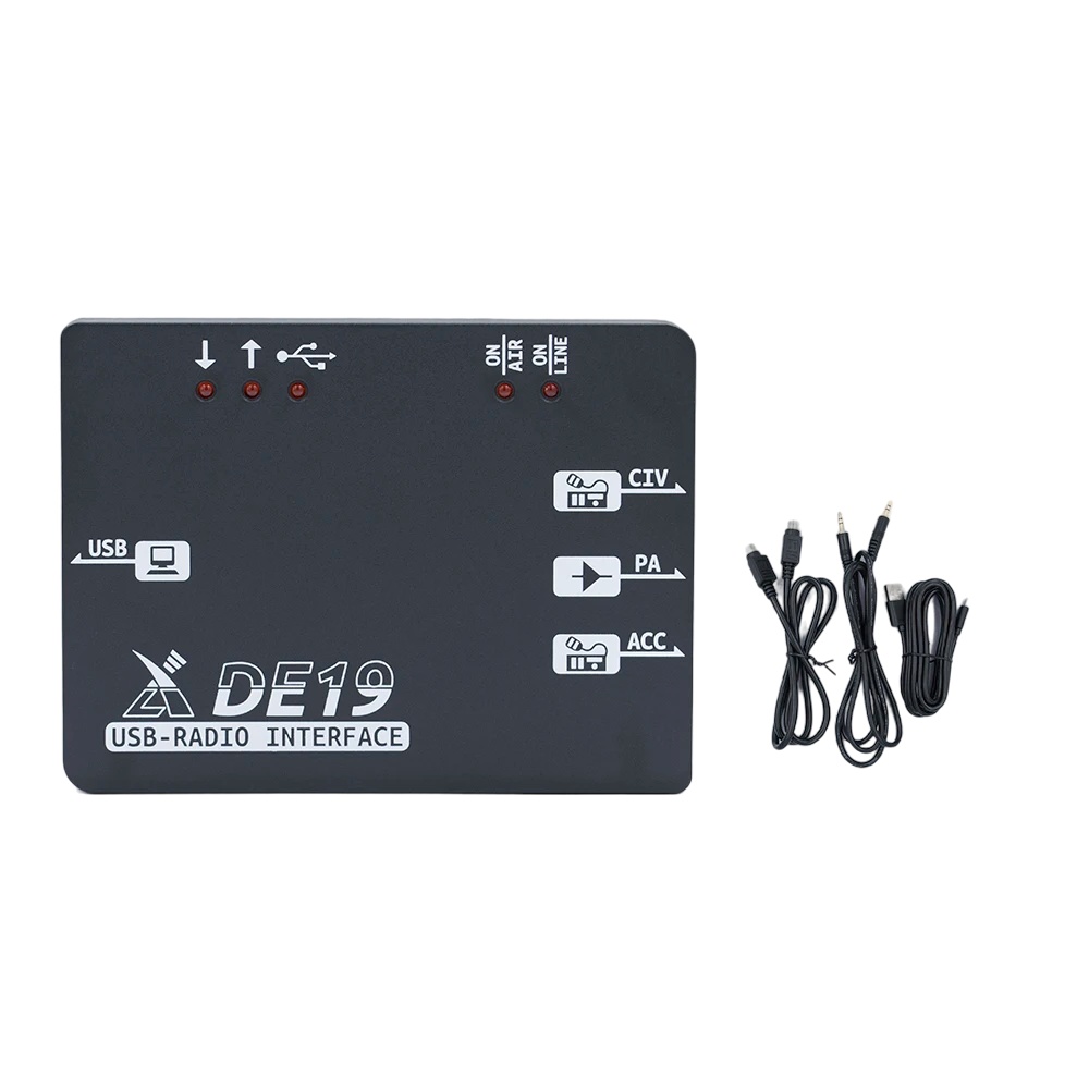 Supplied with: 1 Xiegu CE-19 extension port, 1 mini-DIN8 cable, 1 cable with 3.5 stereo connector with bare end and 3 connectors Jack 3.5mm.