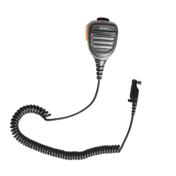 Compact, lightweight, IP54-rated remote speaker microphone. With an integrated chip to verify that it is an original Hytera accessory. With emergency button and external 2.5 mm Micro jackearphone