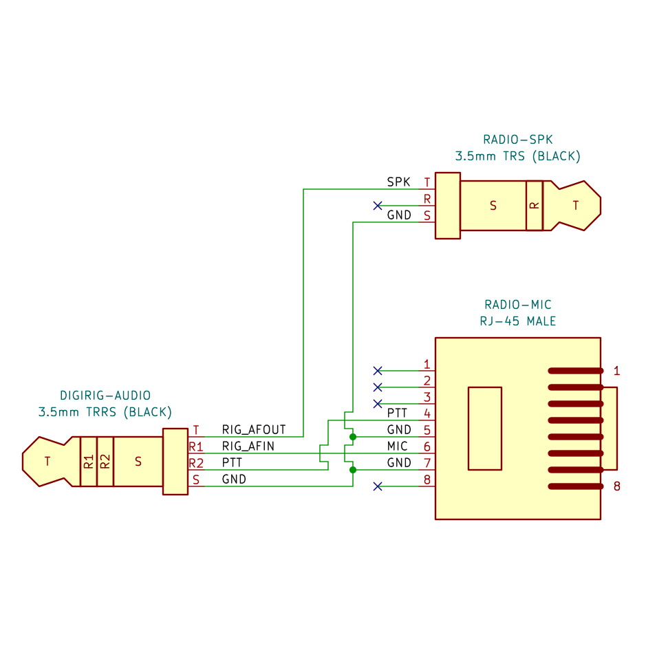Digirig Mobile 1.6+ cables for ICOM transceivers using DIN8 and 3.5mm TRS connectorscoiled cables keep things tidy by avoiding knots and kinks one DIN8 audio/PTT cable and one 3.5mm TRS CI-V serial