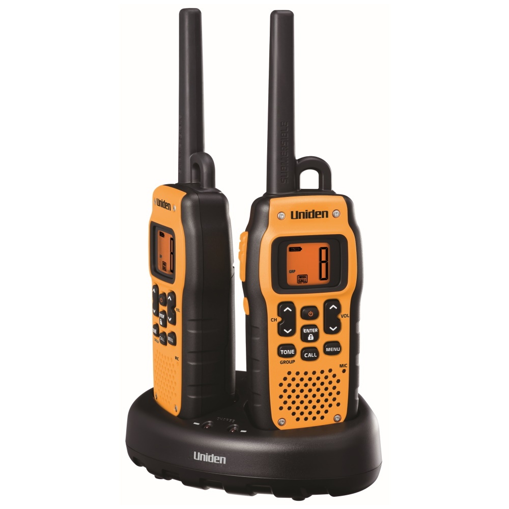 Read the reviewThis pack of 2 waterproof PMR446 walkie talkies, usable without a license, contains 2 Uniden PMR446-SWPF talkies, waterproof, submersible and floating .