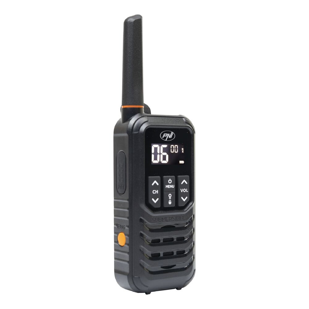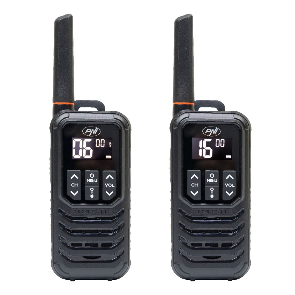 The PNI PMR R80 PRO walkie-talkie is 100% protected against dust and sand and the talkies have been tested to operate for at least 30 minutes under water (submerged to a maximum of 1 m).