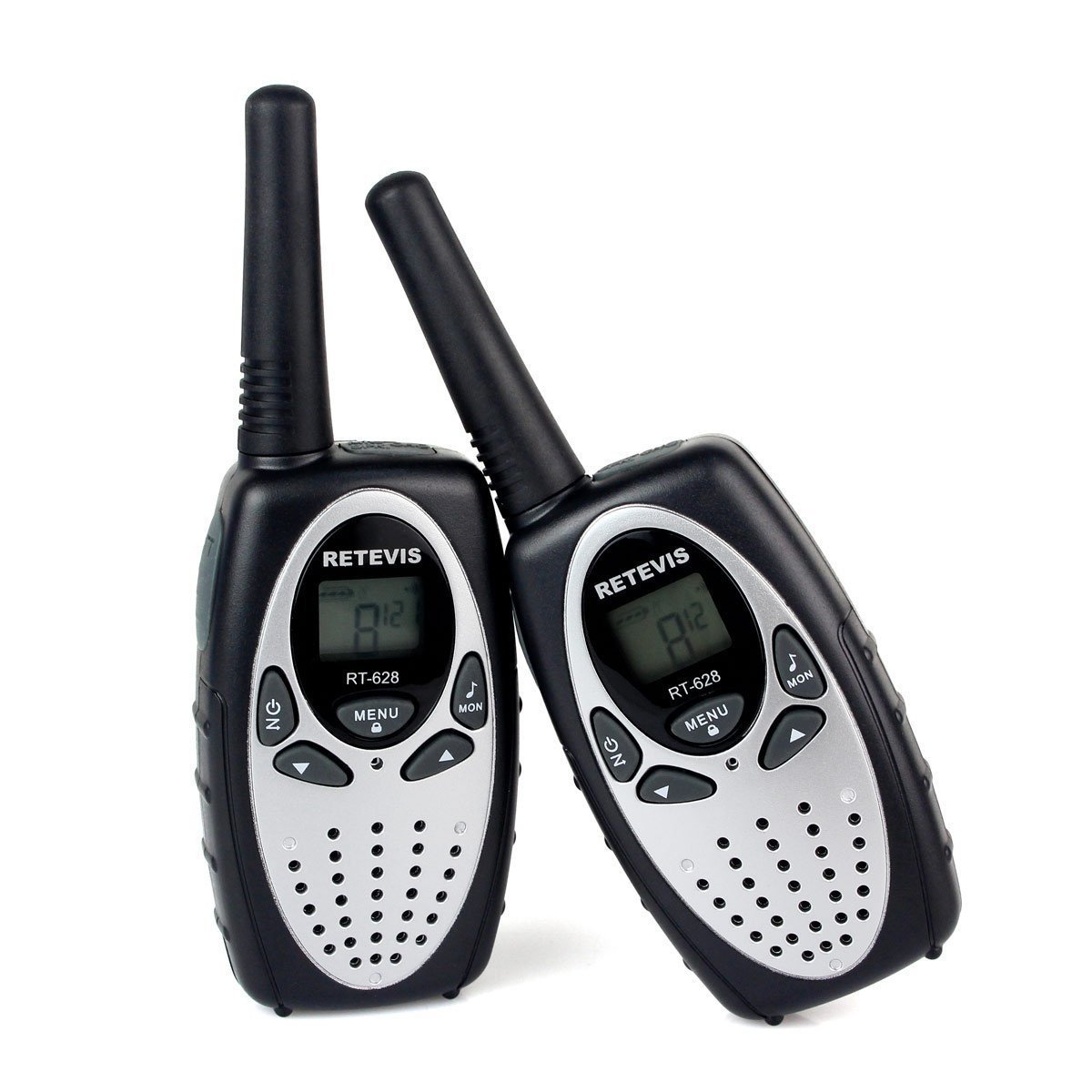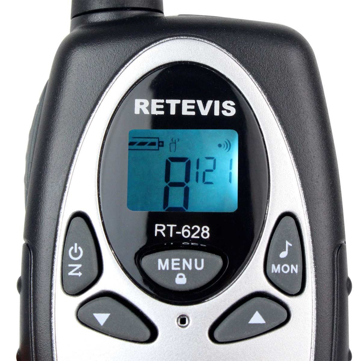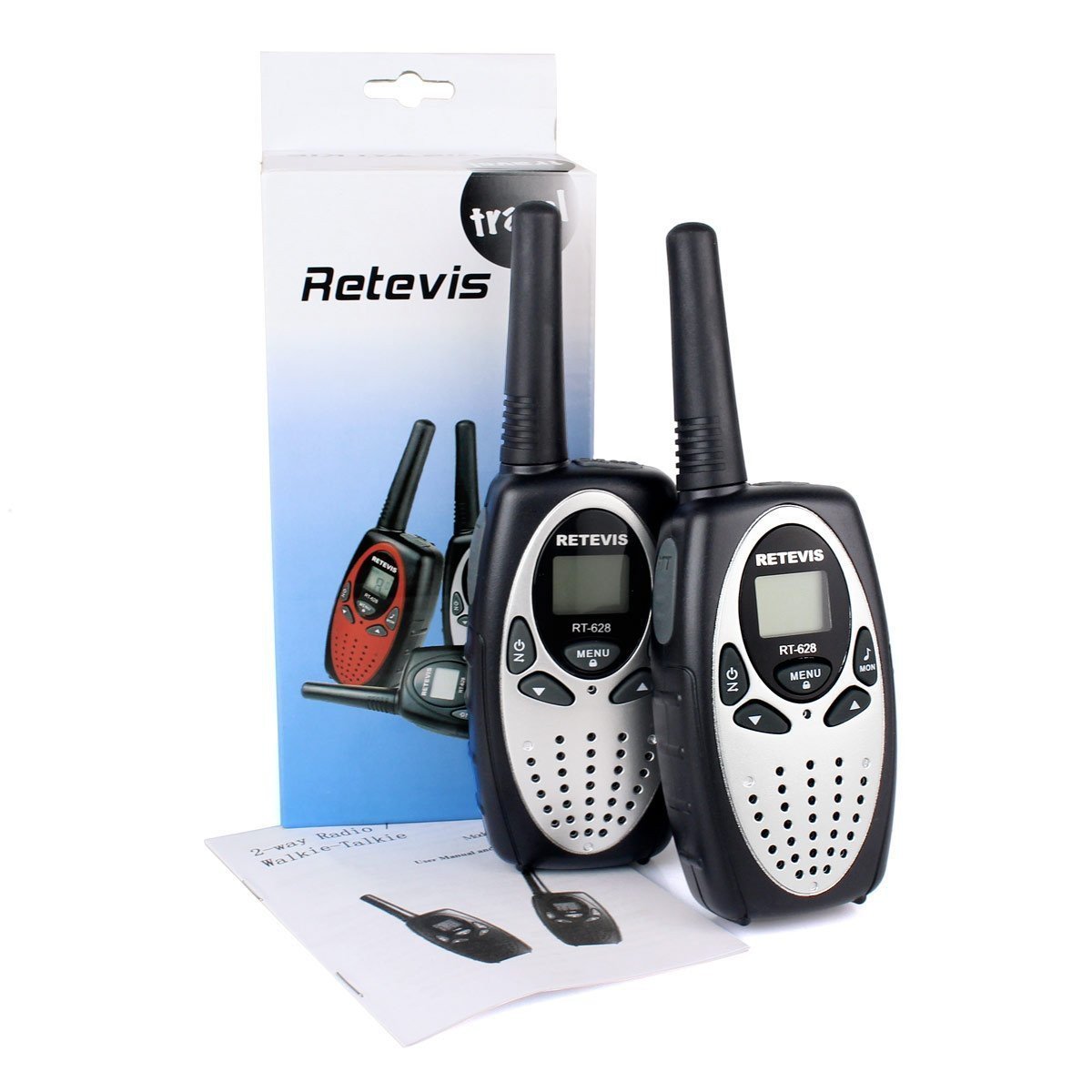 Comes with: 1 box containing 2 Retevis RT-628 walkie-talkies (AAA batteries not included) and manual in English.
