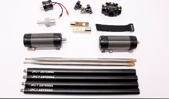 Supplied with: 1x antenna base, 1x balun choke 1:1, 2x telescopic whip 2.5m, 2x multi-band coil, 4x aluminium arm 19x320mm, 2x rotating arm kit, 2x brass connector, 1x balun bandage, 1x tripod adapter, 1x bag 37x23cm, 1x user manual.