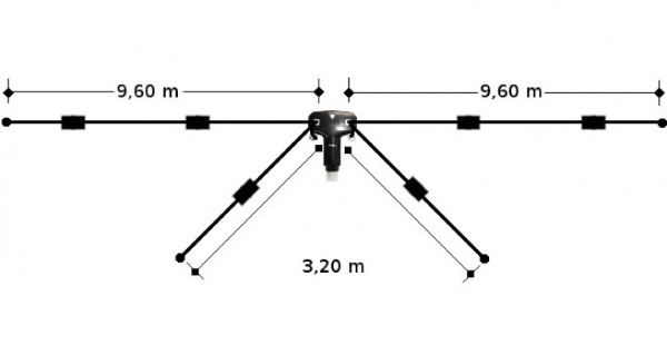 Moonraker GPA-80HF basic HF antenna in aluminum for fixed use in the amateur radio bands from 3.5 to 57 MHz (80 Meters to 6 Meters) in TX transmission (with the use of an external tuner) and for