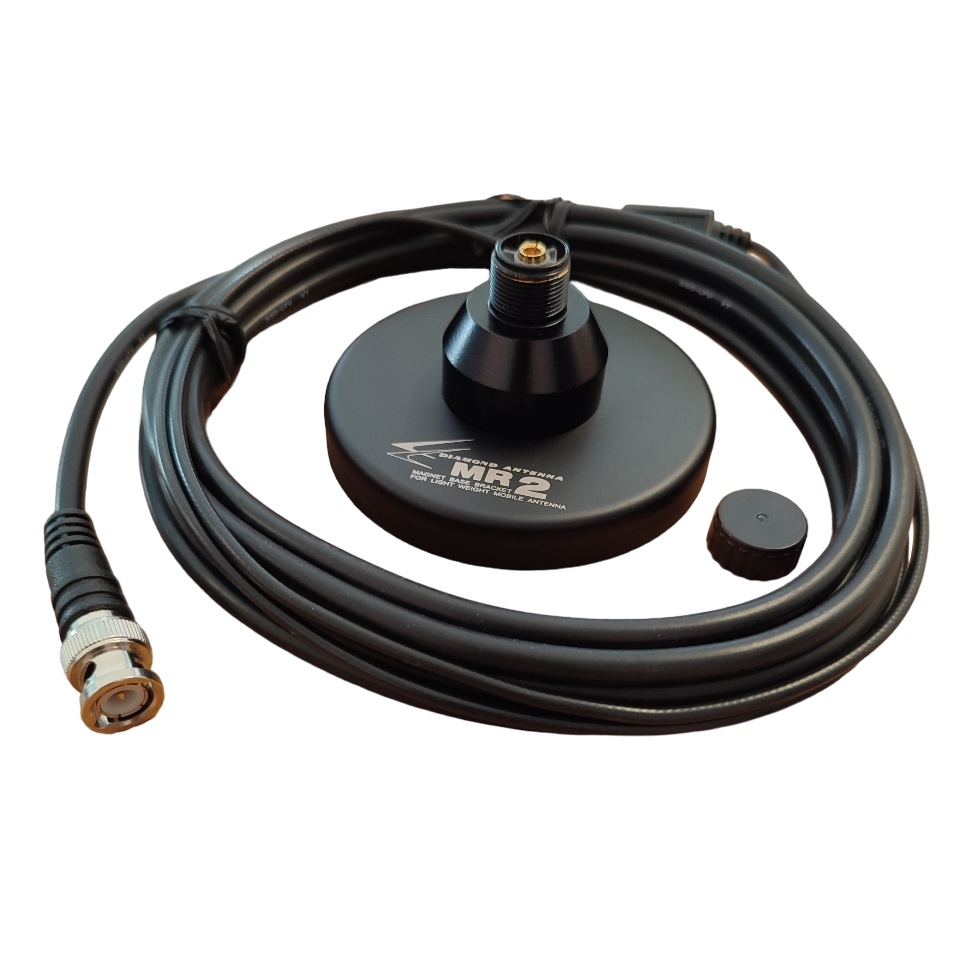 Diamond MRX is a magnet base bracket for handheld transceivers and any devices with BNC connector. Coaxial cable: RG58 3m Connector: BNC Male / BNC FemaleMagnet diameter: 76.5mm