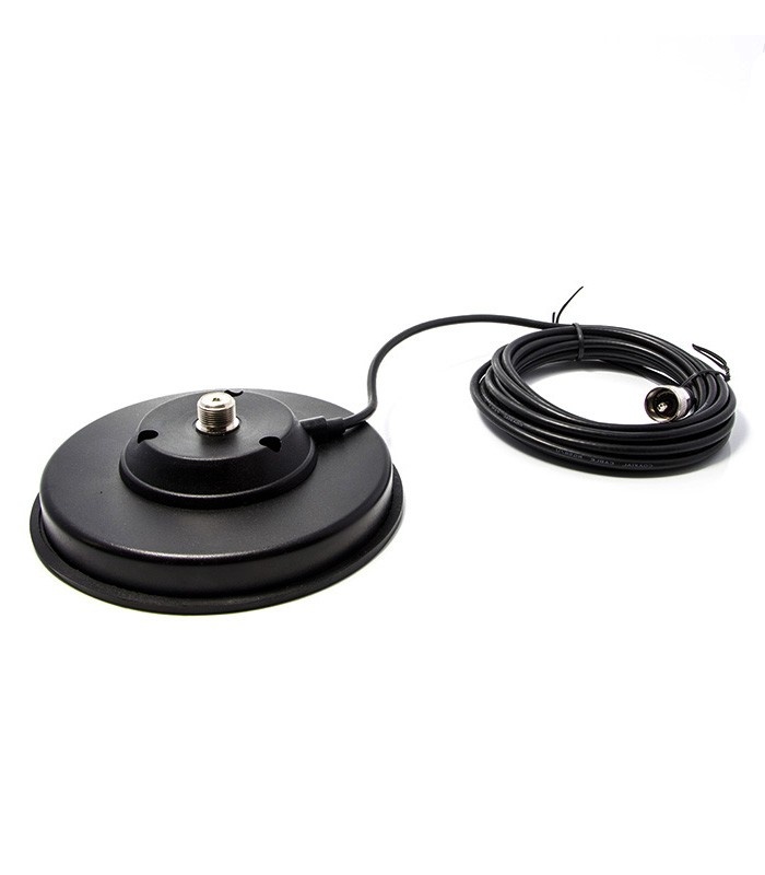 This 15cm diameter magnetic base ensures a solid fixation and allows to screw a PL-259 antenna (UHF-male) on a car roof or a metal surface of minimum 1m².The magnetic base allows to support antennas