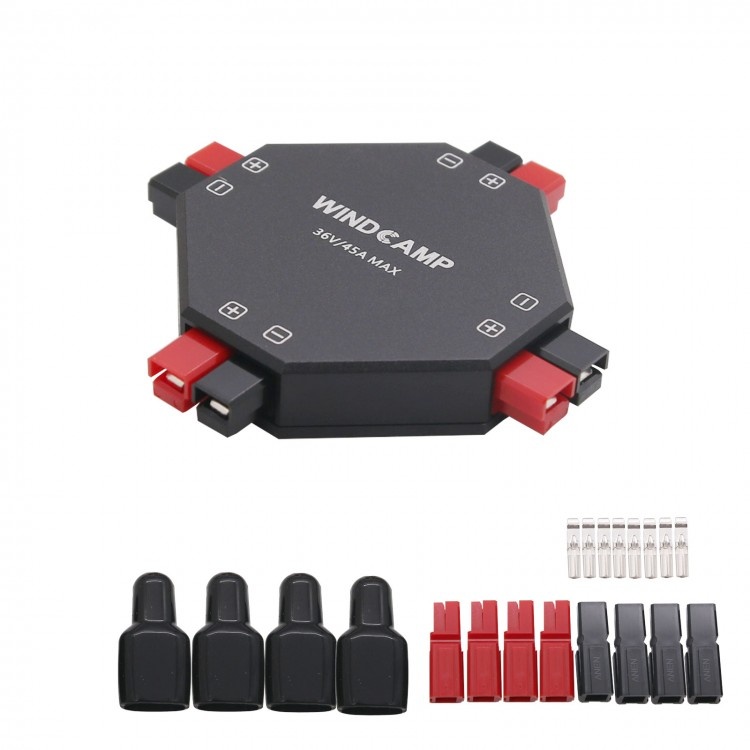 The AP-4 Quad Power Splitter is based on the Anderson plug quad power splitter (Anderson Powerpoles, called AP plug) allowing power communication along with three-way radio connection, tuning and other equipment. This product is designed as a hollow aluminium shell, with a good process and texture.
