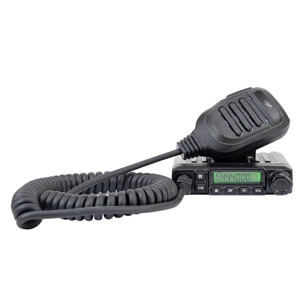 Can be programmed to operate in PMR band frequency 400-470 MHz (UHF) frequency range (programming cable optional), and features transmitter power selection (15W/5W/0.5W), manual channel programming, frequency modification, choice of scan mode, addition or deletion of channels in the scan, call coding, squelch with 9 levels of adjustment, and frequency step selection.