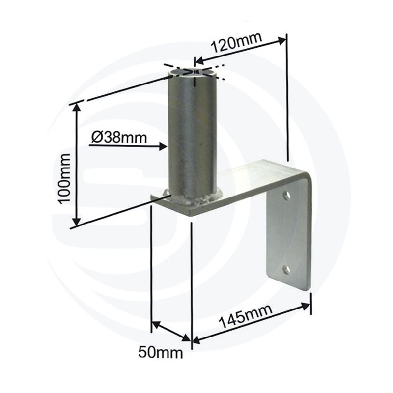 M-3 base antenna support. Double position. Compatible with masts 35 to 42 mm in diameter. Includes brackets and screws. Can also be wall-mounted using 2 screw anchors (not included). Made of 3 mm Ø