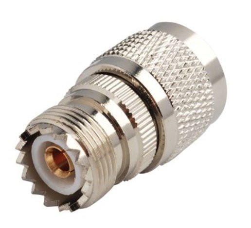 RF N male to UHF male adapter. Impedance 50 ohms. Sold individually.