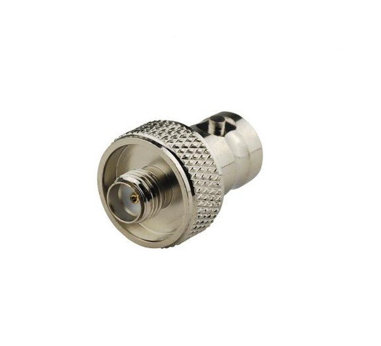 RF adapter for walkie-talkies, VHF-UHF portables or scanners equipped with SMA and BNC antennas. - The adapter has a male SMA connector on one side and a female BNC connector on the other- The design
