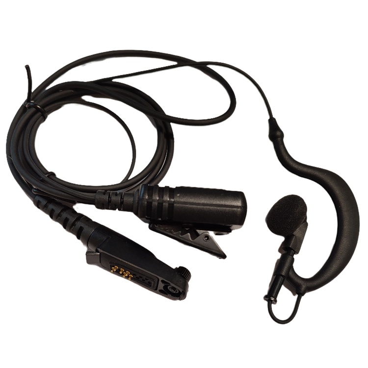 Mic headset with acoustic tube, ear hook, with a spiral cord and a metal clip that can rotate 360°. Compatible with: YAESU: FT-4XE / FT-25E MOTOROLA GP300, DP-1400, SP50, P110, P-1225/P1225LS,