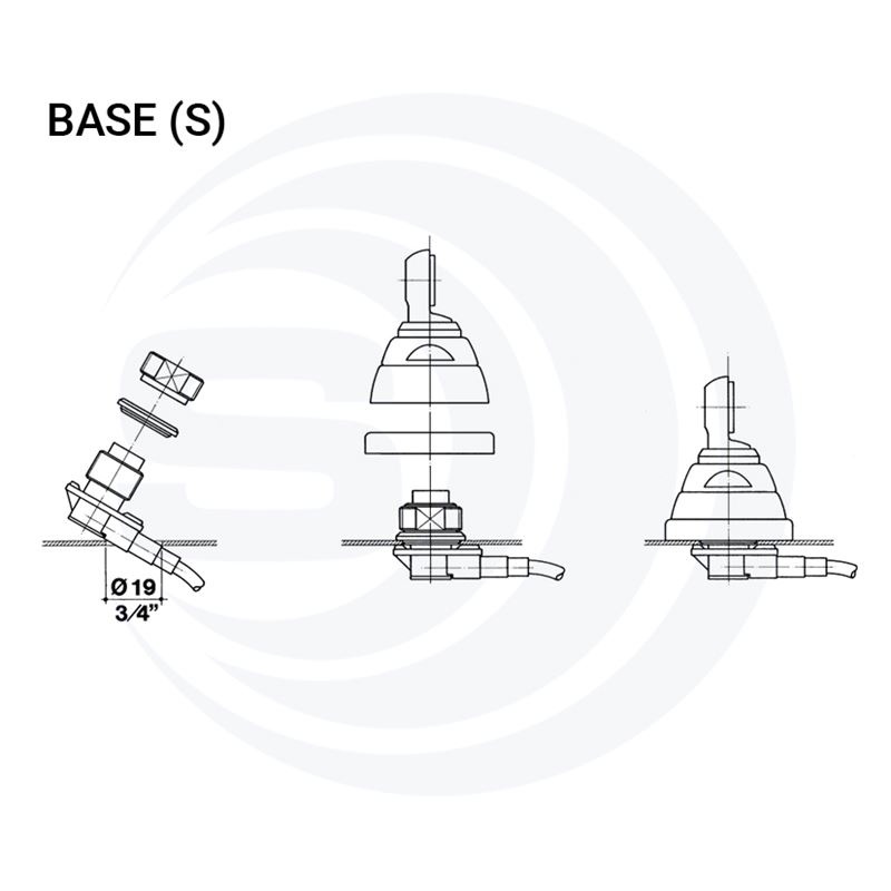 1/4 VHF mobile antenna suitable for 55 to 350 MHz. The radiator allows adjustment between 55 and 550 MHz.This version is supplied with the S base. Specially for VHF applications.The MGA55-550 S is