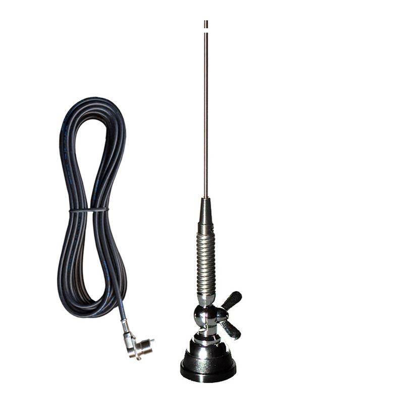 1/4 VHF mobile antenna, adjustable between 108 and 550 MHz. Includes 5 m of RG58 coaxial cable.