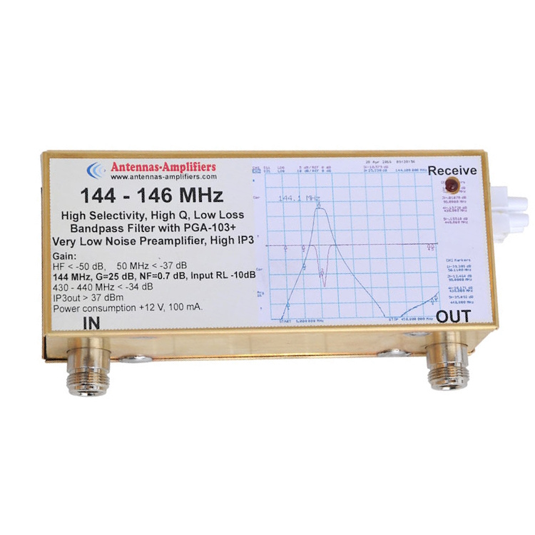 No review at the momentLow-loss input bandpass filter for the 2m band from 144 to 146MHz with PGA-103+ very low noise preamplifier, +25dB gain.