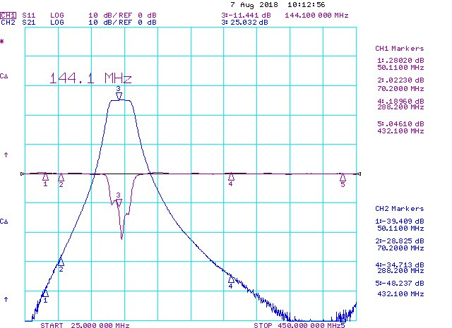 Band-pass filter Antennas Amplifiers for transmitting on the 70cm amateur radio frequency band from 430 to 450 MHz, <0.12 dB with high selectivity, high Q and very low loss, designed for 200 W