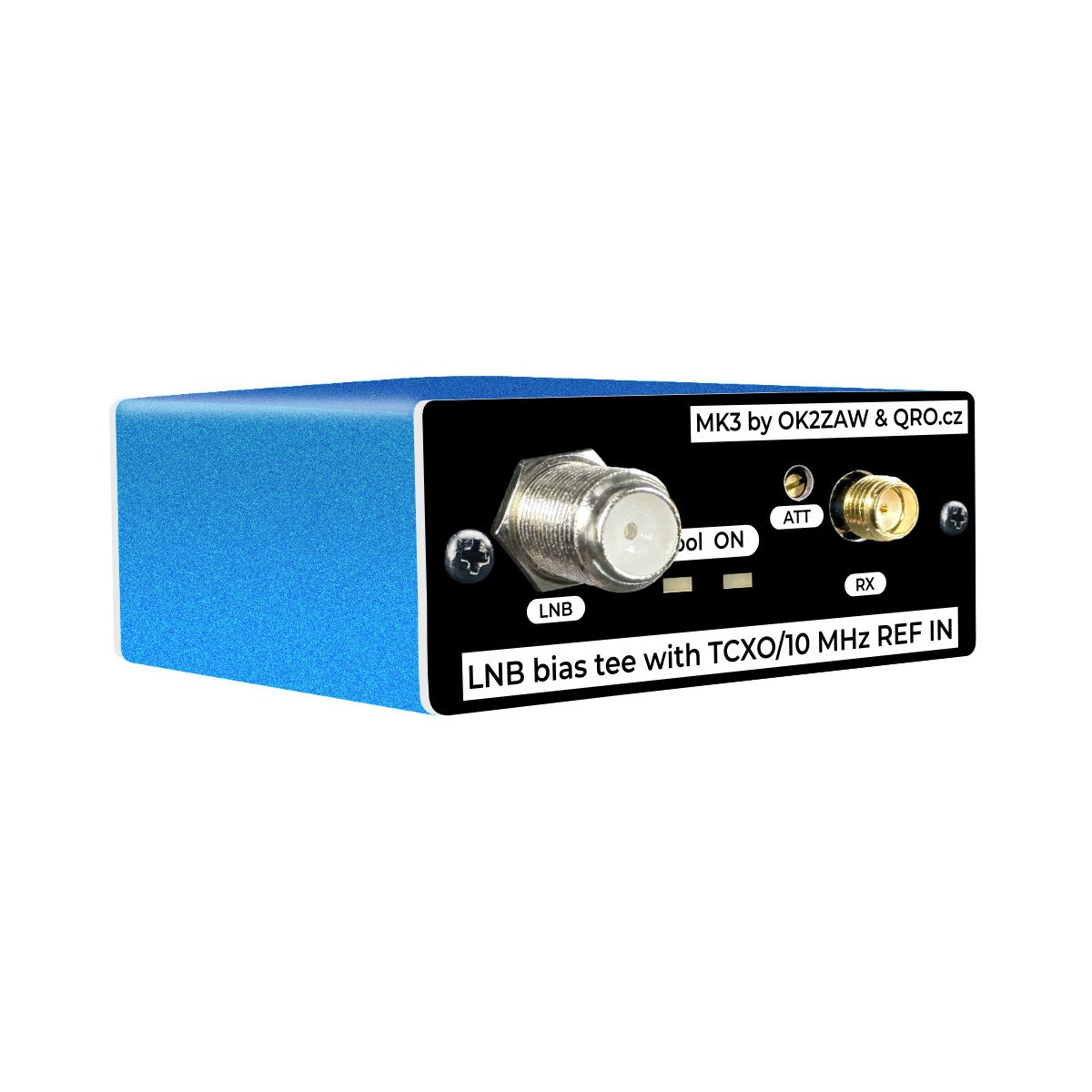 The new Bias Tee Box MK3 offers two LNB reference signal options. The first is an internal TCXO (very accurate and stable), which can be used if you can't connect an external 10MHz source. If you have an external 10MHz precision signal source, for example GPSDO, you will get an even more accurate and stable reference signal for the PLL in the LNB.